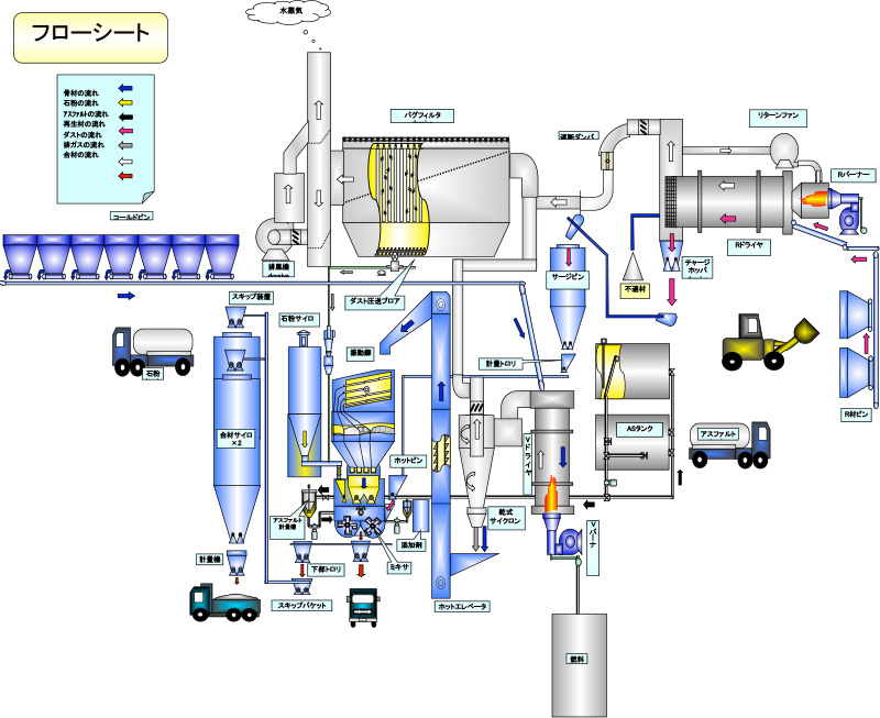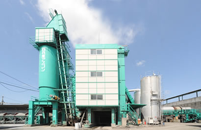 アスファルト合材はアスファルト混合物ともいい、粗骨材、細骨材、フィラー及びアスファルトを所定の割合で混合した材料です。道路ではアスファルト舗装の表層あるいは基層などに用いられます。 当社ではさまざまなニーズに応えられるアスファルト材料を製造販売しております。